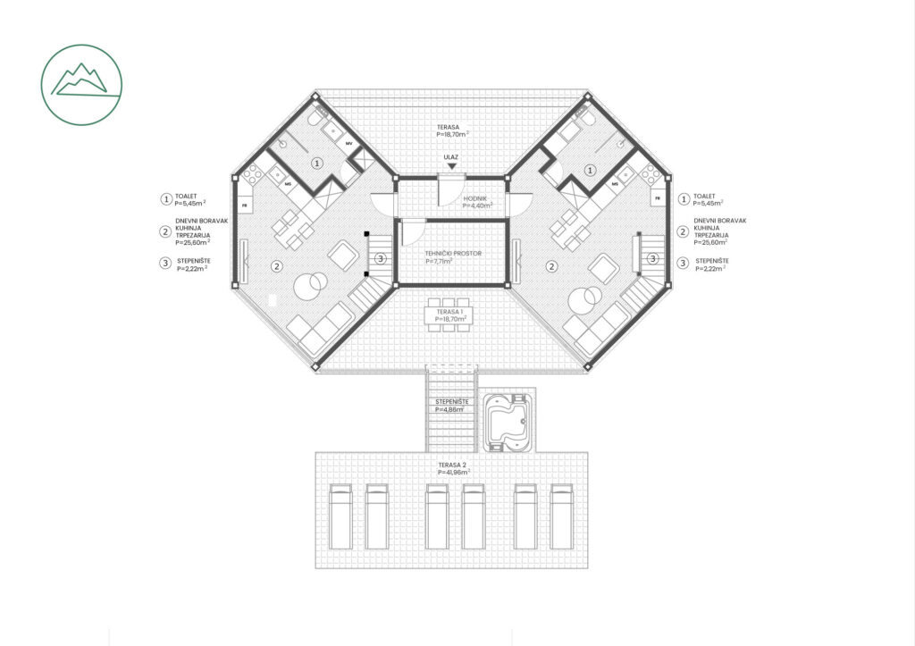 Ove luksuzne planinske kuće predstavljaju idealan spoj prirode i modernog komfora, savršen za one koji traže mir i ekskluzivno iskustvo. Kupite zajedno dva apartmana površine 178m2.